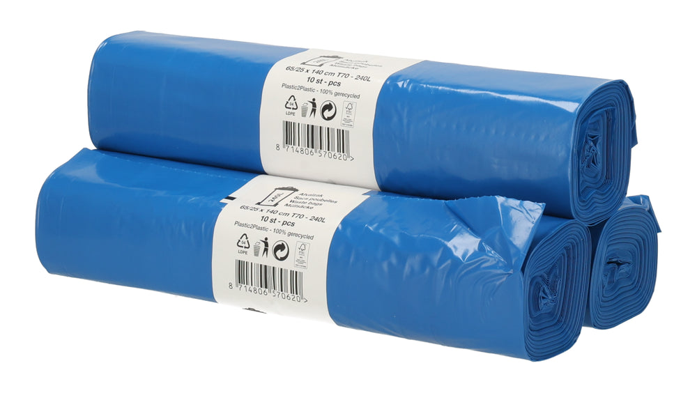LDPE Afvalzakken rol 65/25 X 140cm T 70 blauw - 100 stuks